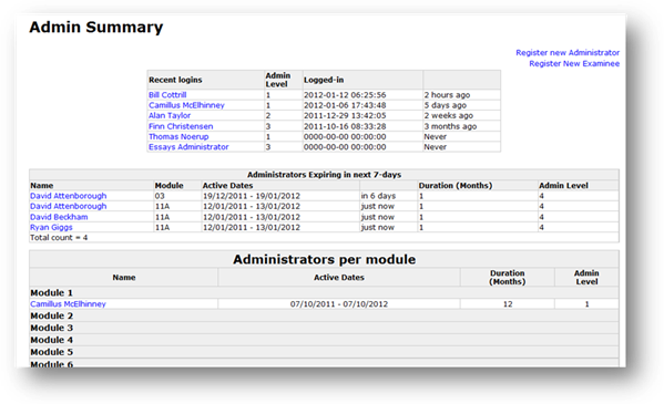 Admin Level 2 – This is a Subject Specialist. The Subject Specialist may, for example, be an instructor in one or more of the Module subjects. You will probably need to setup multiple Subject Specialists, in order to cover all the Modules. The same Level 2 administrator can be subscribed to one or more Modules at the same time. Level 2 administrators can only manage questions, and generate exams in the Module(s) to which they are subscribed.