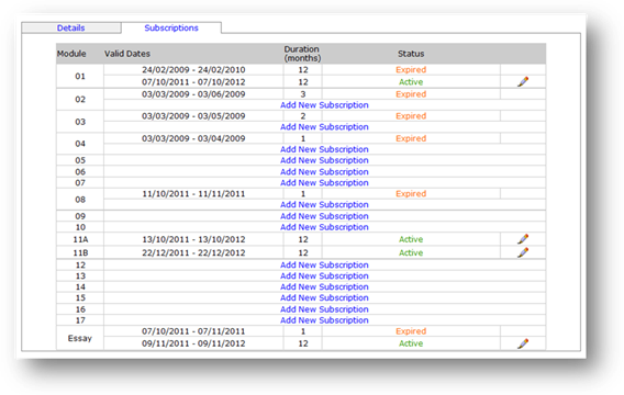 You will notice that the administrator’s Subscription Start Date and End Date for that Module are now listed, and annunciates with the word Active in colour green.